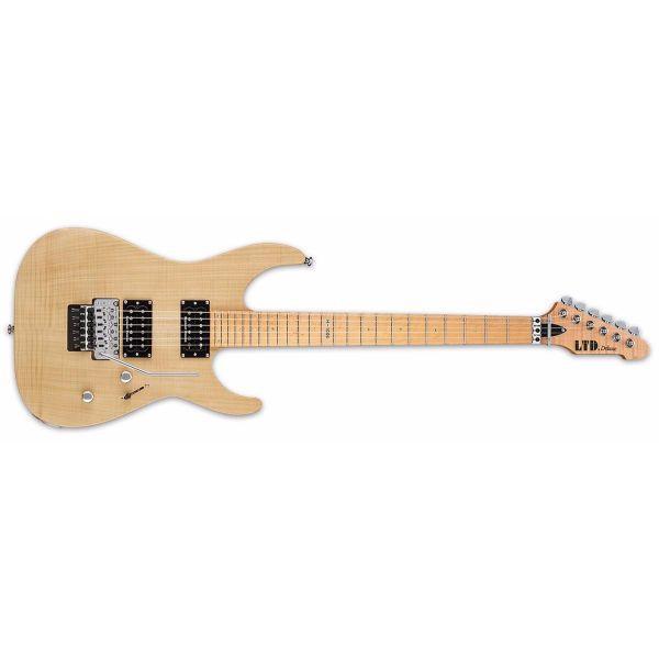 Guitars in the LTD 1000 Series are designed to offer the tone, feel, looks and quality that working professional musicians need in an instrument, along with the pricing that typical musicians can still afford. One look at the new M-1000SE shows that its a serious players guitar, with a bolt-on extra thin-U shaped 5 pc. maple/walnut neck for the ultimate in shredding on its 24-fret maple fingerboard. All the tools you need for expressive playing, from its Floyd Rose bridge to its Seymour Duncan Pearly Gates/Jazz pickups, are right there ready to rock. This powerful guitar has a mahogany body and solid flamed maple drop top, all finished in the simple beauty of Vintage Natural Satin. Specifications: Construction Bolt-On-Neck Scale 25.5 Body Mahogany Top Solid Flamed Maple Neck 5Pc Maple/Walnut Fingerboard Maple Fingerboard Radius 350mm Finish Vintage Natural Satin Nut Width 42mm Locking Nut (43mm Neck Width) Nut Type Locking Neck Contour Extra Thin U Frets/Type 24 XJ Hardware Color Chrome Strap Button Standard Tuners Grover Bridge Floyd Rose Neck PU Seymour Duncan SH-2 Bridge PU Seymour Duncan Pearly Gates Electronics Passive Electronics Layout Vol/Tone/5-Way Ultra Switch