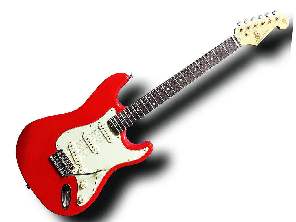 ESSEX VES62FR SC STYLE ELECTRIC GUITAR FIESTA RED. Gig Bag Free Online Lessons. Supplied with SX 7mm padded gig bag. UPlay Guitar Guide with free online lessons. Double cutaway solid alder body.