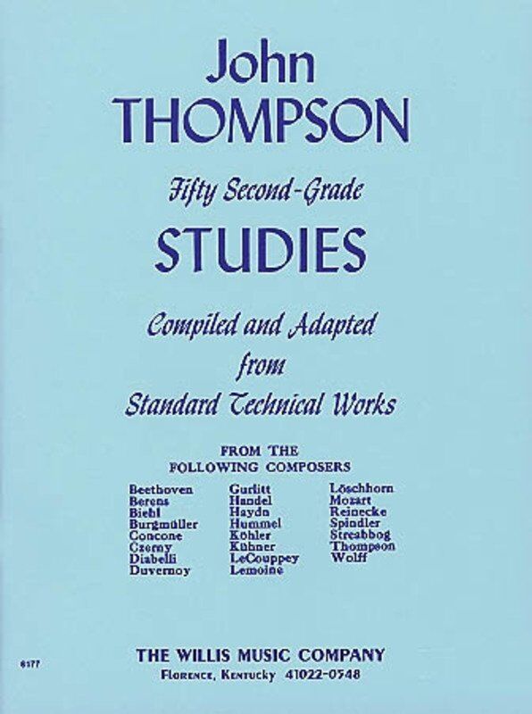 Compiled from the works of practically all the recognized masters of etude writing. Edited and fingered by John Thompson and designed to hold the pupil's interest and develop the various points of pianism encountered in the second grade (or later elementary level). Fifty Second Grade Studies Publisher: Willis Music Instrument: Piano Pages: 52