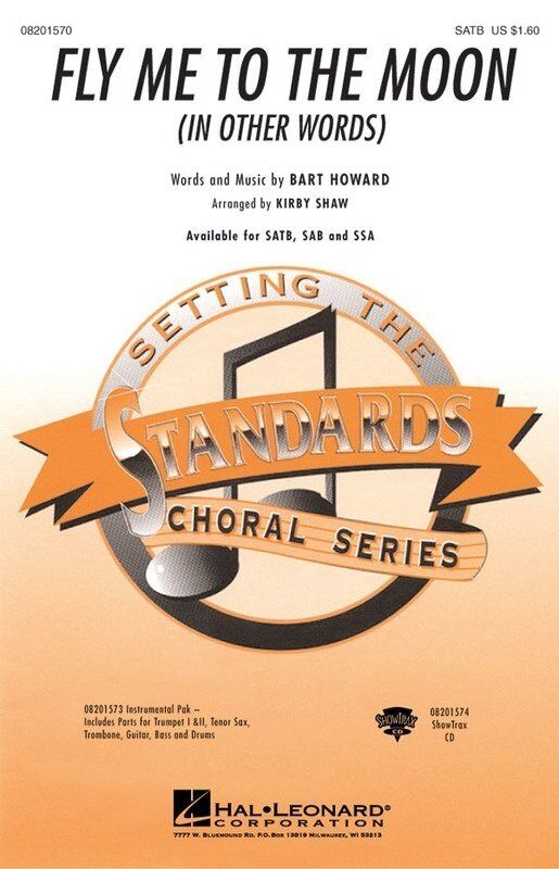This great jazz standard has been recorded by Tony Bennett and many others. The Latin groove setting is great for developing style, diction and ensemble skills. Don't miss it!Available separately: SATB, SAB, SSA, Instrumental Pak (Trumpet I & II, Tenor Sax, Trombone, Guitar, Bass and Drums) and ShowTrax CD. Performance Time: Approx. 2:25. Fly Me To The Moon (In Other Words) Arranger: Kirby Shaw Publisher: Hal Leonard Instrument: Choral Format: Choral Score Pages: 8