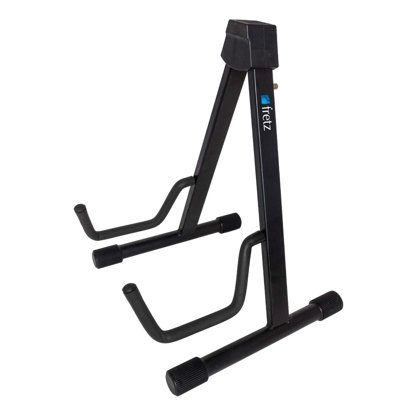The Fretz FGS-2A-BLK Acoustic Guitar Stand is a sturdy classic stand featuring a heavy-duty A-frame design and a tubular base with non-slip rubber feet with padded supports and back rest, as well as an easily adjustable, spring loaded mechanism. Suitable for acoustic guitars.