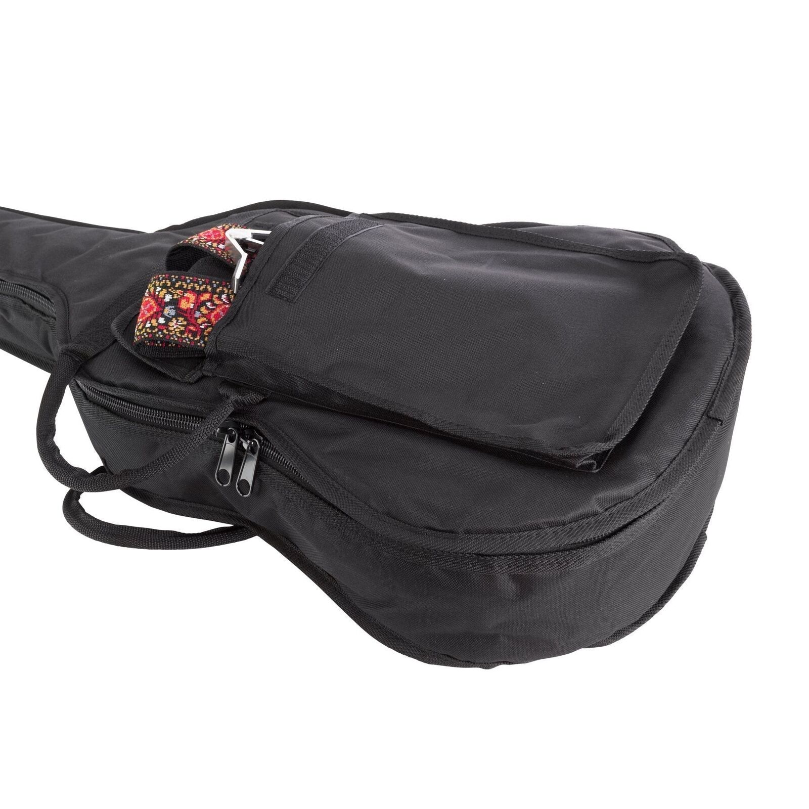 The Fretz Deluxe Classical Guitar series gig bags are constructed of heavy duty polyester with 10mm thick rigid foam padding and feature tear resistant interior panels at the headstock and bridge, heavy duty zip, front accessories pocket, stitched carry h