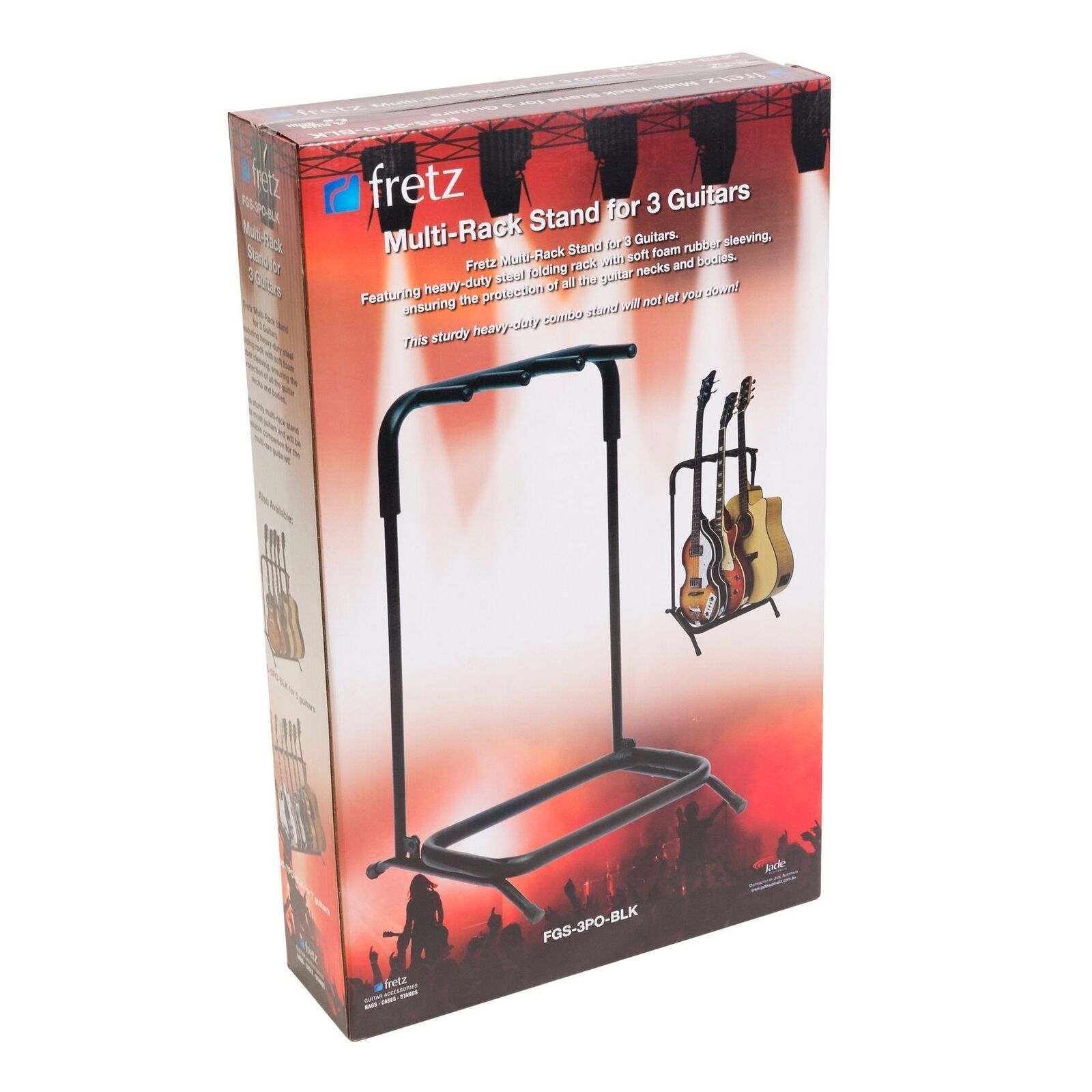The Fretz multi-rack guitar stand offers an easily transportable multiple guitar stand solution in a foldable, light weight and durable design. Whether it's at home, on stage or in the studio, the Fretz multi-rack keeps your musical invests safe with its