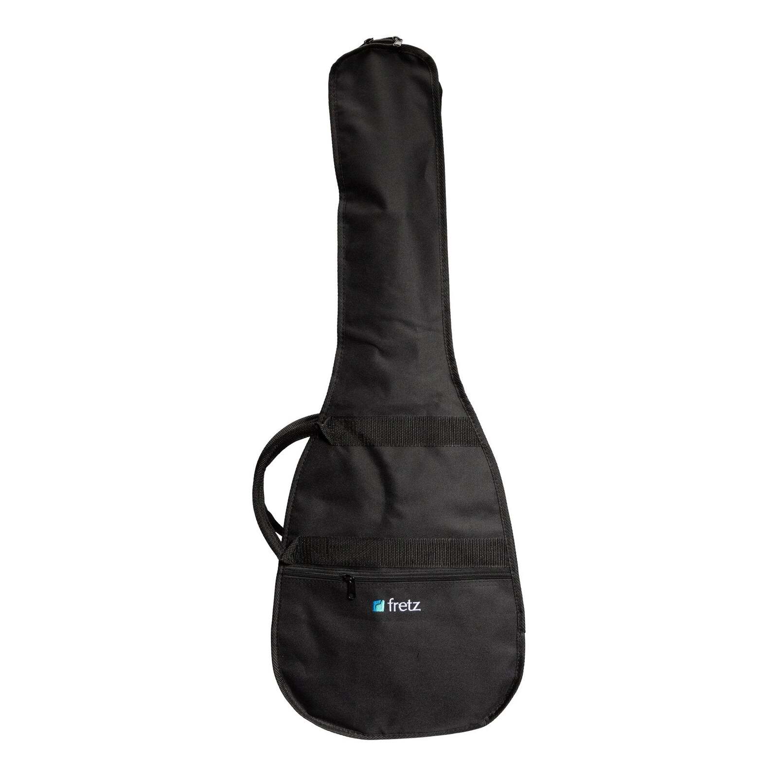 Fretz Standard 1/2 Classical Guitar gig bags are constructed of heavy duty polyester, featuring a heavy duty zip, front accessories pocket, stitched carry handles and adjustable back straps with quick releases clips. Suitable for most 1/2 (34") classical guitars. Approximate Bag Dimensions: LENGTH: 840mmWIDTH: 330mmDEPTH: 95mm