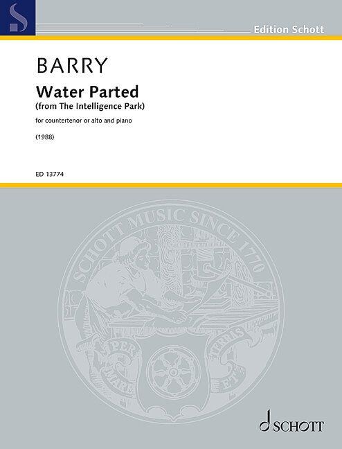 Water Parted (from The Intelligence Park) for countertenor or alto and piano. Duration: 7 minutes Water Parted (from The Intelligence Park) Composer: Gerald Barry Publisher: Schott Music Instrument: Voice Pages: 16 Series: Edition Schott