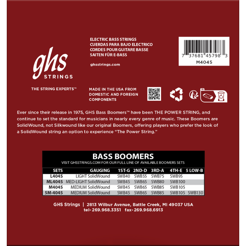 GHS Strings released Bass Boomers® in 1975 and altered the course of rock and roll! Winding a nickel-plated steel cover over a hex core, Bass Boomers® have a distinct low-mid bump that is aggressive and bold.