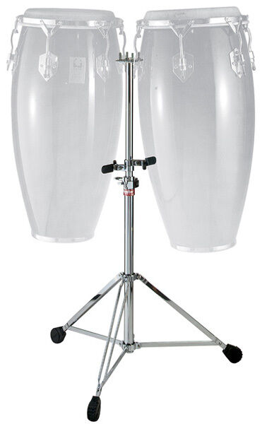 Gibraltar Double-braced Double Conga Stand. Designed to fit most congas L-bracket mounting system Heavy-duty mounting assembly Adjustable drum position guides Memory/position lock