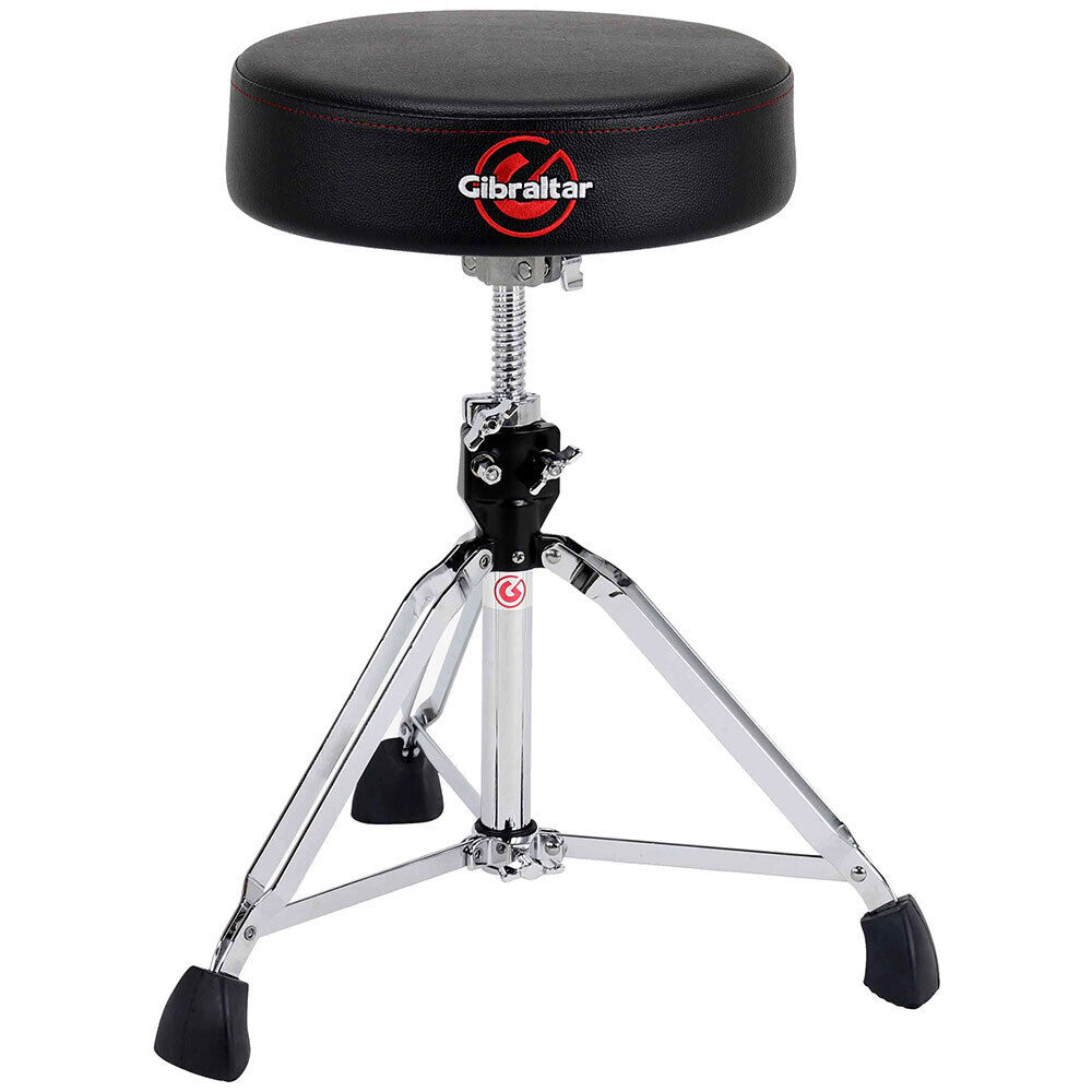 This heavy duty, double-braced throne is built to withstand the roughest treatment. Gibraltar's "go to" model 9608 is a heavy-duty double-braced throne built to withstand the roughest treatment while providing maximum comfort to the player. Featuring a 13" diameter round 3.5" thick round memory foam seat outfitted in black PVC leather on top and side panels with stitched color logo. The 9608 double-braced tripod base extends from the lowest setting of 20" to 26" in height. The all-cast spindle height adjustment makes it easy to adjust the height, then lock in the setting with a wing nut memory lock for wobble-free stability. Gibraltar's exclusive design Super Foot provides a stable foundation to give hours of solid support. Top grade 13" memory foam round seat with black vinyl top Rock Solid double braced leg base Super-lock cast seat fastening system Super foot solid foundation rubber feet Memory lock height adjustment Top Dimensions (D x H): 13.75" x 3.75" Height Range: 20" to 26" Weight: 5.44 kg Weight Capacity: 129 kg Base: B9608