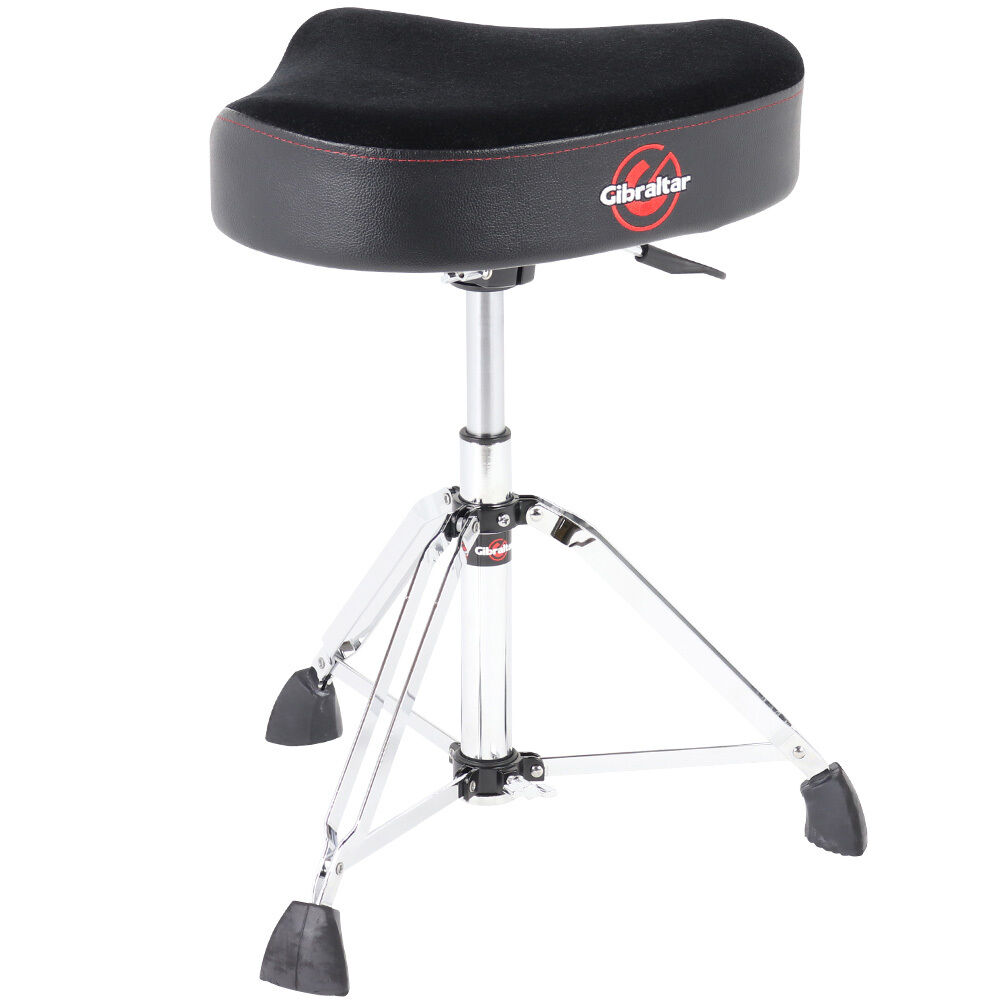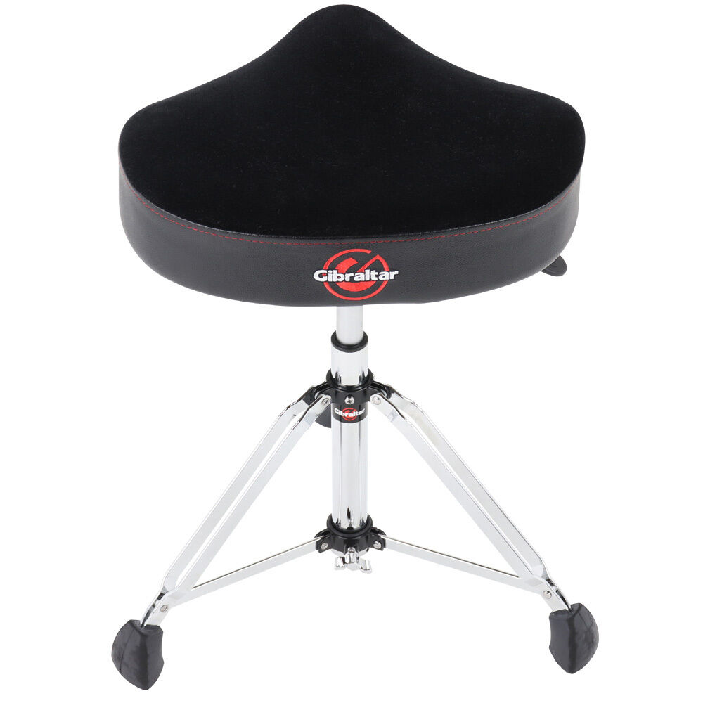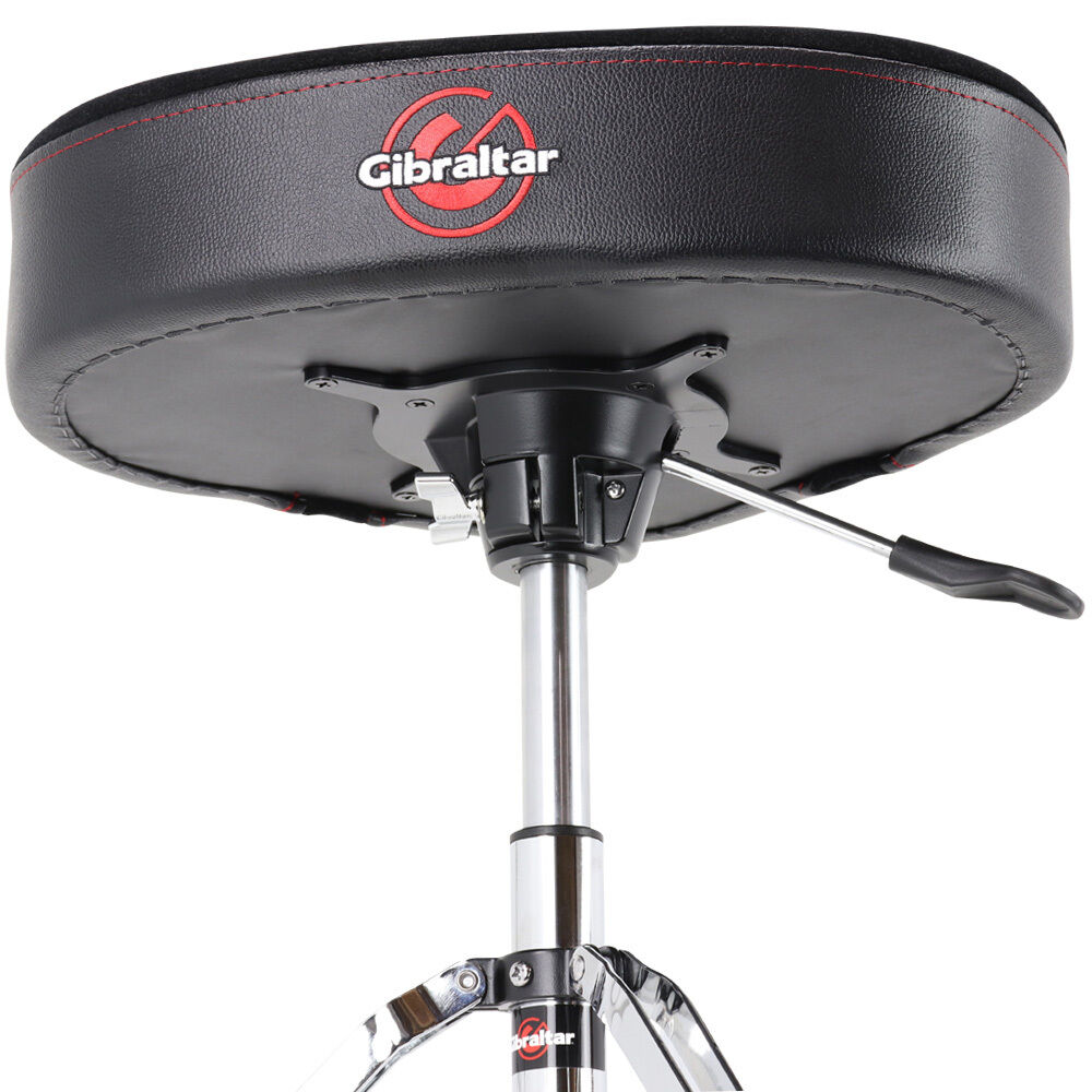 The Gibraltar 9608HM pneumatic height-adjust throne has been a long-standing industry favourite. Updated with a new height-adjust cylinder and mounting bracket, we've raised the bar on this popular model. The seat is a plush, oversized saddle style with enhanced comfort and support. The height-adjust lever is now more conveniently located on the seat mounting bracket for more comfortable and easy-to-reach control. Equipped with a double-braced tripod, and Gibraltar's exclusive Super Foot, this base is as rock solid as possible. The throne seat offers a height range of 20" to 26". With the 9608HM, you'll find your sweet spot quickly and effortlessly to provide maximum playing time without discomfort. FEATURES: Cordura and vinyl plush oversized saddle seat. Improved pneumatic height adjustment with an easy-to-reach lever. Double-braced tripod with Gibraltar's exclusive oversized Super Foot. Height range from 20 inches to 26 inches Dimensions: 17.25" x 15.25" x 3.75". Weight: 5.89 kg Weight Capacity: 129 kg