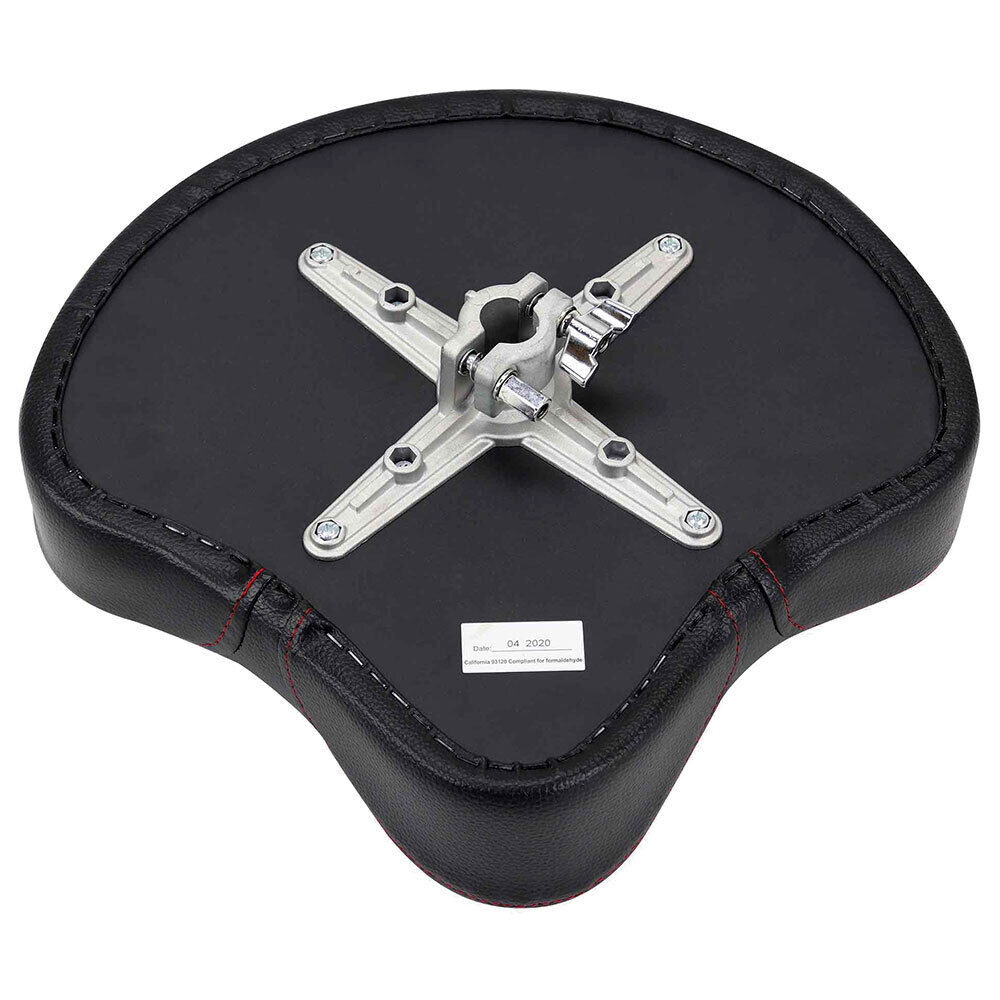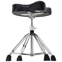 An oversized saddle seat paired with heavy-duty 4-post base results in one of the most comfortable thrones you will ever sit on. The 9908 starts with a 4-post throne base that provides a solid foundation outfitted with Gibraltar's Super Foot and easy-to-use spindle height adjustment with wing nut memory lock. On top is a 16" wide by 16" deep oversized saddle seat with a unique lower lumbar contour built right into the seat and covered in the highest quality durable PVC leather with custom red detailed stitching. SPECIFICATIONS: Top Dimensions (W x D): 16" x 16" Seat Depth: 4" Height Range: 20" to 28" Weight: 6.35 kg Weight Capacity: 136 kg