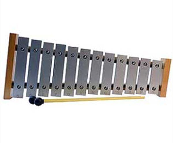 Glockenspiel – 12 note (C-G) Diaton. The Bars are made from bell-quality steel, individually and accurately tuned to standard A-440, and securely attached to a durable wooden frame. When struck, the bars give a very pure, bell-like sound.