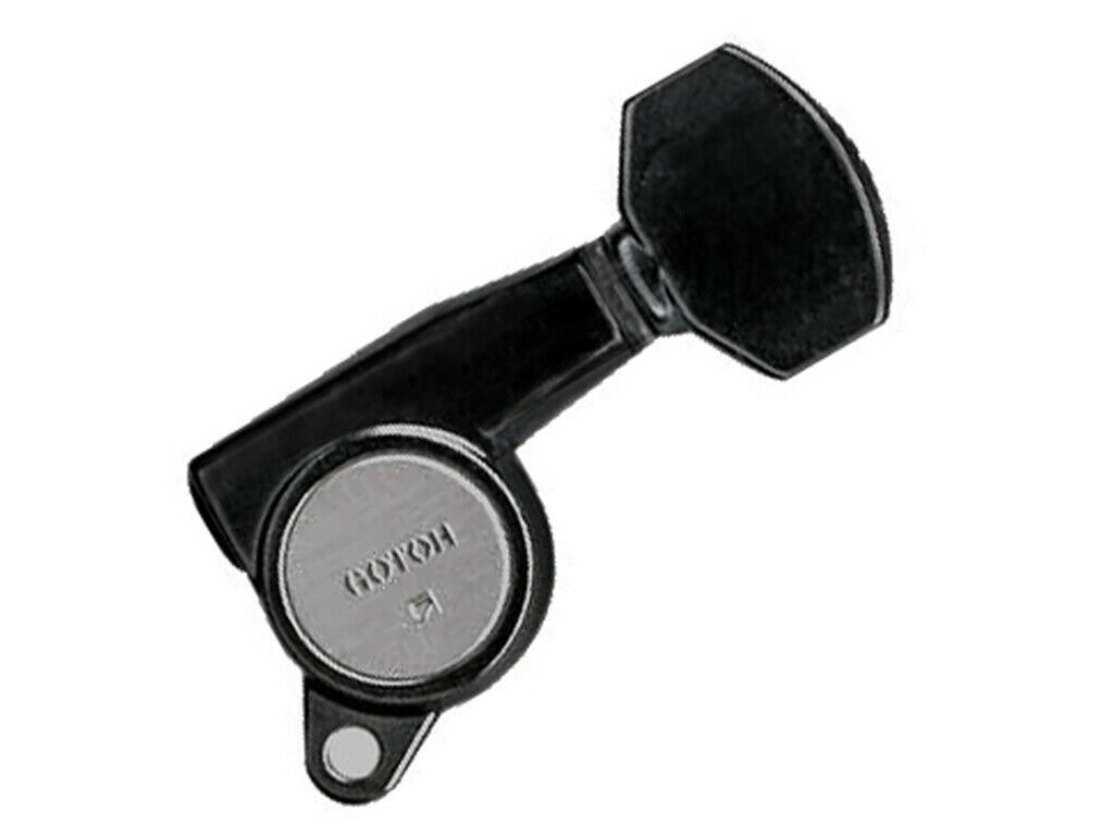 GOTOH G38B DELUXE 6 IN LINE BLACK MACHINE HEADS. Set of 6 deluxe cosmos black machine heads with diecast housing. For Acoustic/Electric Guitar.