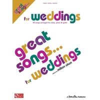 A beautiful collection of 59 pop standards perfect for wedding ceremonies and receptions, including: Against All Odds (Take a Look at Me Now) • Always and Forever • Amazed • Beautiful in My Eyes •Can You Feel the Love Tonight • Endless Love • Forever and Ev er, Amen • Give Me Forever (I Do) • Grow Old with Me • Love of a Lifetime • Never Gonna Let You Go • Open Arms • (I've Had) the Time of My Life • Unforgettable • The Vows Go Unbroken (Always True to You) • When I Fall in Love • The Wind Beneath My Wings • and more. Great Songs for Weddings Publisher: Cherry Lane Music Instrument: Guitar|Piano Format: Piano, Vocal & Guitar Pages: 280 Series: Great Songs