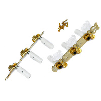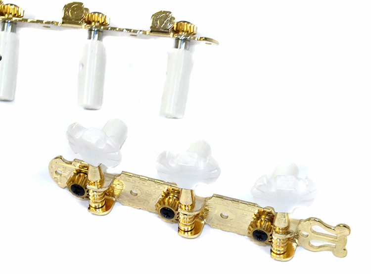 GT Classical Guitar Tuning Machines on Decorative Plate in Gold Finish with Fancy White Buttons (3+3)