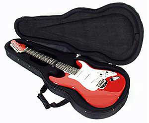 Guitar case - "Hard bag" electric. Soft inside lining to provide cushioning for the guitar and hard outer shell. Handy carry strap.