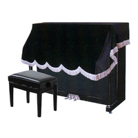 Decorative dust cover for upright piano, the half-cover sits over the top of the piano and covers the keyboard shelf. The black synthetic velour is finished with an attractive tasseled edge. 196 x 140cm.