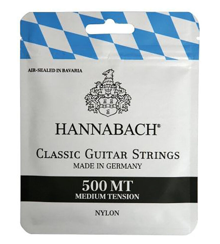 Hannabach Classical Guitar Strings Set 500MT Medium Tension, Handmade in Germany, High-Precision Trebles, Moisture-Resistant Packaging