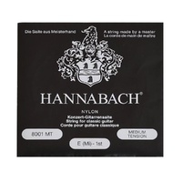 Single clear nylon treble 1st E string from Hannabach “E800” Medium tension set. Made in Germany by Hannabach.