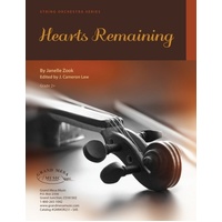 Guilt, regret, anger and mourning... those who remain after tragedy strikes are sometimes overlooked, but this musical memoir remembers and honors the hearts that remain but feel a piece of them has passed away through tragedy. The heartfelt melody is woven with stunning harmonies, intense climaxes and serene tranquility. "Hearts Remaining" will challenge and inspire young musicians to think, feel and play deeply, from the heart, empathizing with those... who remain. Hearts Remaining Composer: Janell Zook Publisher: Grand Mesa Strings