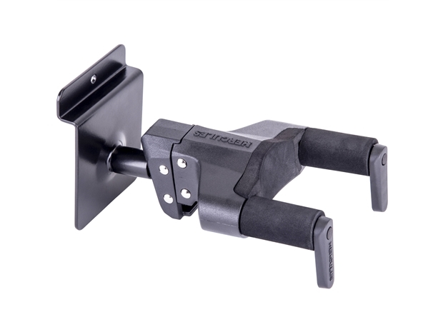 The HERCULES Auto-Swivel Yoke Hanger GSP39SBPLUS rotates automatically to accommodate different shaped guitars or basses vertically and safely. It features a slat wall base for display use. SPECIFICATIONS:- The Auto-Swivel Yoke with Auto Grip System allows for multi-angle adjustments while safely locking instrument in place.- Slat wall mounting system.- Specially Formulated Rubber Foam fully protects instrument at all contact points.