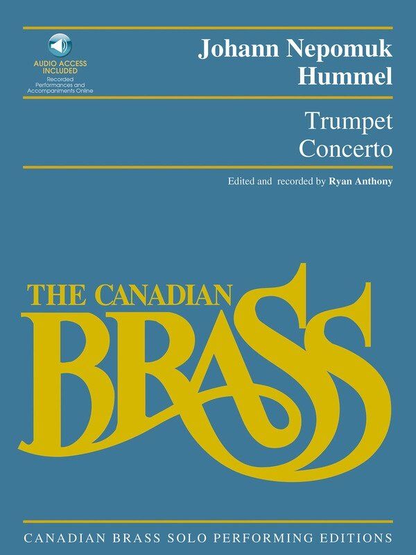 Canadian Brass Solo Performing Editions feature trumpet parts, piano reduction accompaniment, and recordings of a performance by Canadian Brass trumpeter Ryan Anthony, plus an accompaniment-only recording for play-along practice. Includes two score inserts for the trumpet part: one for E-flat trumpet, the other for B-flat trumpet.