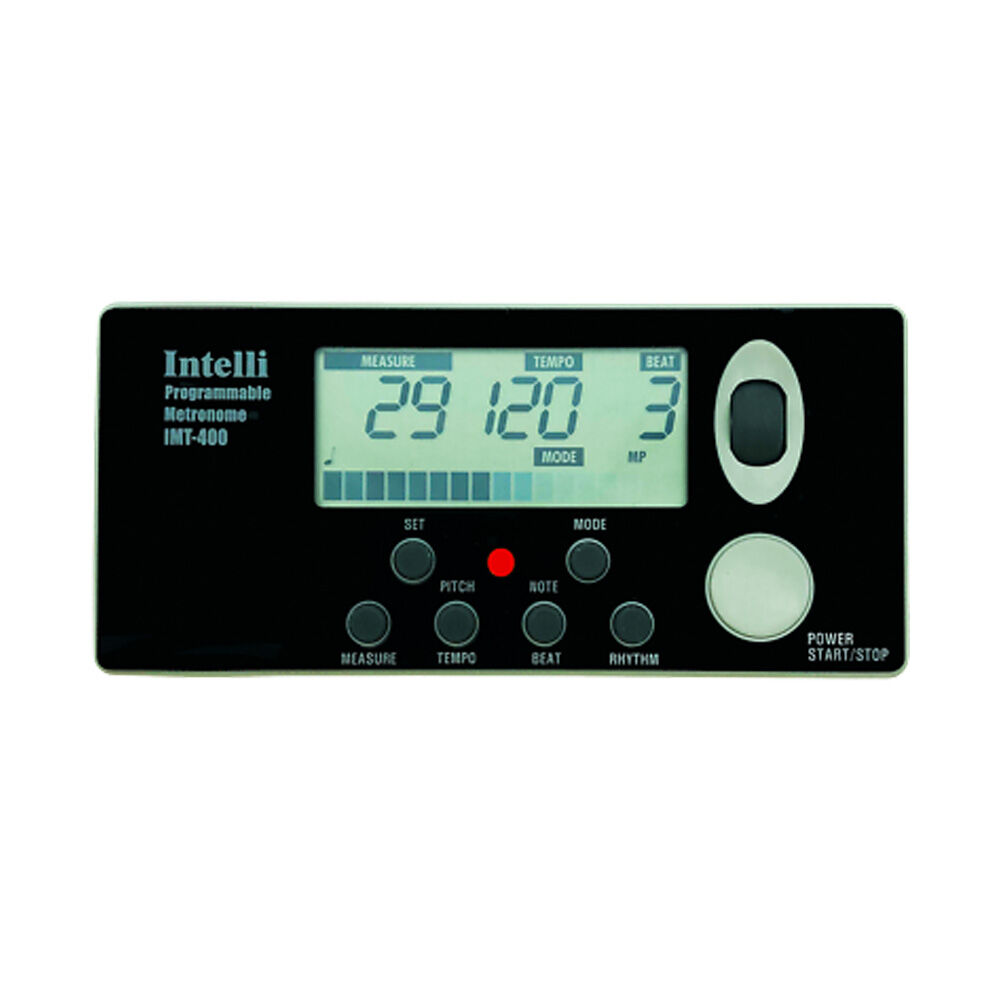 Intelli Programmable Metron IMT-400. Tempo, beat and rhythm patterns are all programmable with measure information. When played in programmable mode it will change patterns automatically according to the measure information. All settings are stored in memory during power-off and it’s synthesized digital sound produces a loud and clear tone. Programmability along with a reference pitch generator makes this one of the most accurate and intelligent dual digital metronomes available.