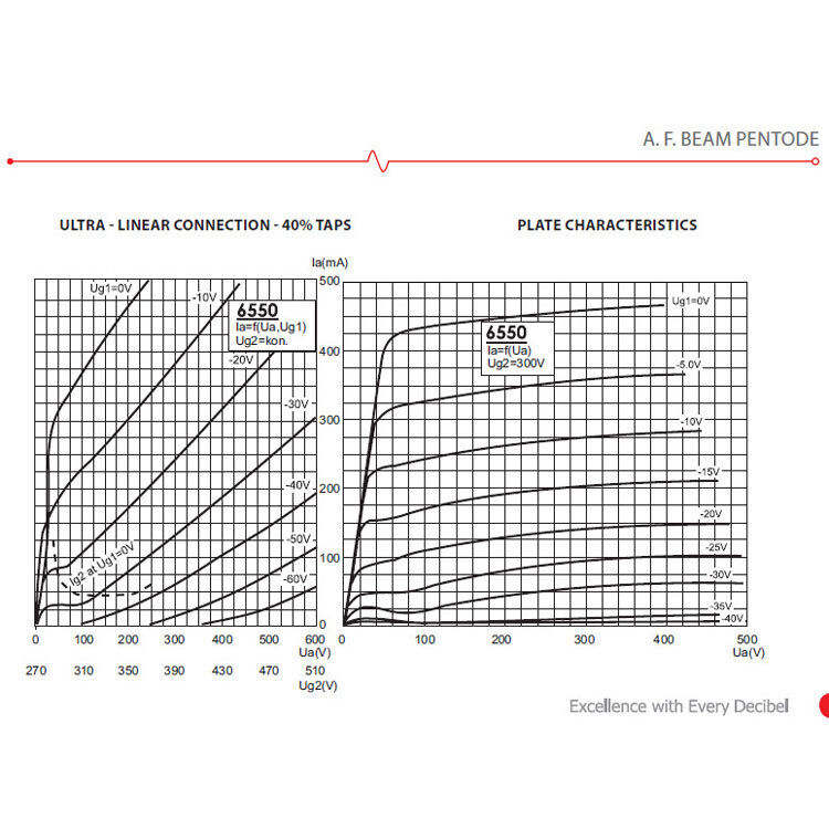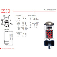 A.F. BEAM PENTODE - 6550 is a beam output pentode with octal base and power of 35W. Very powerful and great for bass, guitar and Hi-Fi amplifiers. It delivers a little less power than the KT88 but with a fatter tone. JJ Electronic is a world-renowned manu