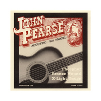 Gauges:  .010, .014, .023, .030, .039, .047 Highest quality phosphor bronze wound strings. Strong reputation with performers around the world. John Pearse 500XL Extra Light strings features lighter gauges (10-47), which offer easier playability, especially suited for beginners or those preferring minimal finger strain. These gauges also provide a brighter, more responsive tone. Known for delivering a rich, full tone with enhanced harmonics, the John Pearse Phosphor Bronze strings are a go-to choice for players seeking a full-bodied sound. Crafted in the USA and designed for longevity, these strings offer durability and consistent performance, ideal for musicians looking for clarity and projection across various playing styles.