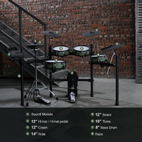 Kahzan ACE530 Electronic Drum Kit Professional Performance. Authentic Feel. Total Control. Step into a new class of electronic drumming with the Kahzan ACE530 , the latest evolution of Kahzan’s acclaimed ACE series. Designed for serious players and demanding practice environments, the ACE530 delivers an incredibly lifelike playing experience with a powerful sound engine, ultra-responsive mesh pads, and solid, road-ready hardware. At the heart of the ACE530 is the advanced DSP-5202 sound module , loaded with 918 premium voices , 72 dynamic drum kits , and 15 play-along demo tracks . Whether you’re rehearsing, recording, or performing, the ACE530 gives you a deep, expressive sound palette that responds naturally to every nuance of your playing. The kit features dual-layer mesh heads for a realistic acoustic feel, with adjustable tension to fine-tune your rebound. Multi-trigger cymbals with instant choke provide precise articulation, and the ultra-durable 8" mesh kick pad has been endurance-tested to withstand more than 22 million continuous strikes — making it one of the most reliable kick towers in its class. With built-in Bluetooth connectivity , you can stream music directly into the module for hassle-free practice, or connect to apps and learning tools to enhance your sessions. A sleek, modern layout with dedicated group faders gives you hands-on control of each drum’s level, making on-the-fly mixing easy and intuitive. Whether you're upgrading your home practice setup or choosing a dependable kit for studio work, the Kahzan ACE530 blends professional features with exceptional playability — all in a package that’s built to last. Key Features DSP-5202 Professional Sound Module – 918 high-quality voices – 72 Drum Kits (preset + user programmable) – 15 built-in demo songs – Bluetooth audio streaming Premium Mesh Pad Setup – Dual-layer mesh heads for natural stick response – Adjustable tension for customised rebound – 12" mesh snare – 10" mesh toms Cymbal Configuration – 12" Hi-hat with included pedal – 12" Crash with choke – 14" Ride with multi-zone triggering Kick Tower – 8" Mesh bass drum pad – Tested for 22,000,000+ consecutive hits – Compatible with single or double kick pedals Hands-On Module Control – Dedicated faders for individual drum levels – Clear LCD display – Easy navigation and quick kit switching Sturdy 4-Post Rack System – Stable, quiet, and fully adjustable What’s Included ACE530 DSP-5202 drum module 12" mesh snare pad 3 × 10" mesh tom pads 12" hi-hat + pedal 12" crash cymbal 14" ride cymbal 8" mesh kick drum Sturdy rack system All cables and mounting hardware