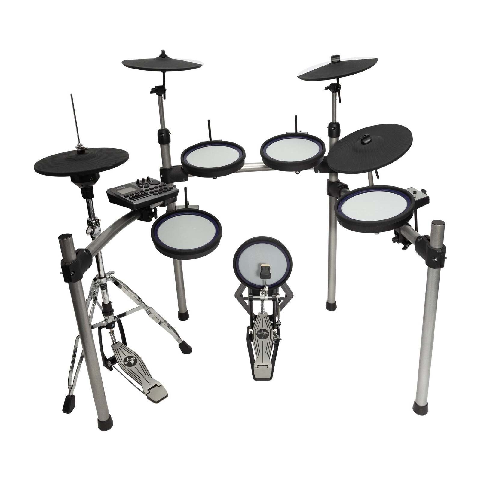 The Kahzan KTD-MK5X Deluxe Electronic Drum Kit has all the versatility and convenience you would want from a modern digital drum rig. Featuring an array of contemporary functionality including USB connectivity for home recording, AUX, MONO and Headphone for playback and practice, as well as superlink mesh heads for a natural rebound response. The Kahzan MK5X sound module features 25 authentic styles of kit, with another 25 customisable user slots and over 400 preset voices, as well a Volume, EQ, Reverb, Decay, PAN & Pitch Control. Module features: 25 Preset Drum Kits 25 User Preset Kits 400+ Preset Voices Adjustable metronome with tempo control Master volume, EQ, Reverb, PAN, Decay & Pitch Control Group Faders Adjustable MIDI, triggering and pad sensitivity USB/MIDI Output AUX Input L/MONO Output (for connecting to amplifier or external audio equipment) Headphone Input Drum kit consists of: 1 x MK-5X Sound Module with Rack Clamp (Includes Power Adaptor)1 x Rack Stand2 x Base Stands1 x Hi-Hat Stand with Control Pedal3 x Cymbal Mounts 4 x Cymbals (Hi-Hat, Crash 1, Crash 2, Ride)5 x Superlink Mesh Head Drum Pads (Snare, Tom 1, Tom 2, Floor Tom & Bass)1 x Kick Drum Pedal1 x Connection Cable with Individual TRS Jacks and Wire Looms1 x Drum Key1 x Pair of Drum Sticks The Kahzan MK-5X Digital Electronic Drum Kit pack also comes with extra parts, Owner's Manual and a setup and installation guide.