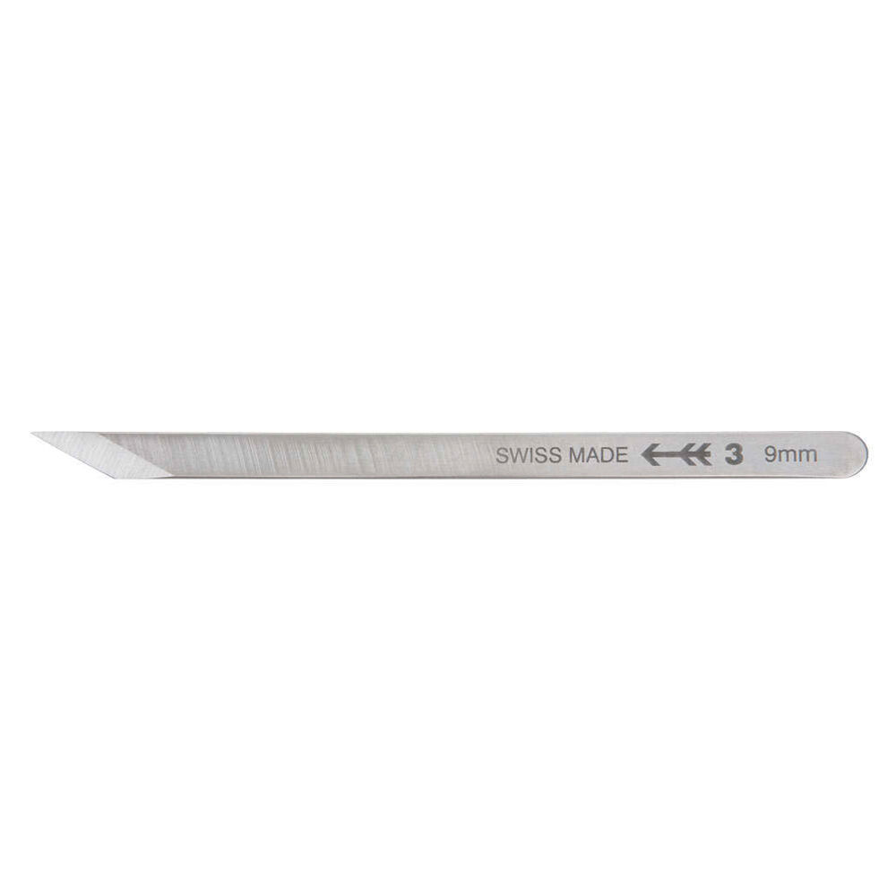 9mm Knive – Swiss Steel. Hardened to approx. RC59-60 and double bevelled. Supplied without handle. Ideal for bridge shaping, etc. Made in Switzerland.