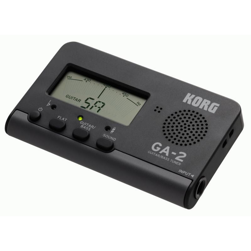 With its superior basic functionality and convenient functions, the GA series has become extremely popular with musicians as a standard guitar/bass tuner, now has a fresh new look. While carrying on the stylish design with its simple layout of the necessary functions, it now has a larger note name and string name display, making the meter even easier to read. Dedicated guitar and bass modes can be selected, making it a must-have item not only for beginners who have just started their instrument but for all players. The GA-2 provides stable tuning functionality in any situation from home to studio and stage, with the high precision, sensitivity, and simple ease of use that you expect from KORG tuners.