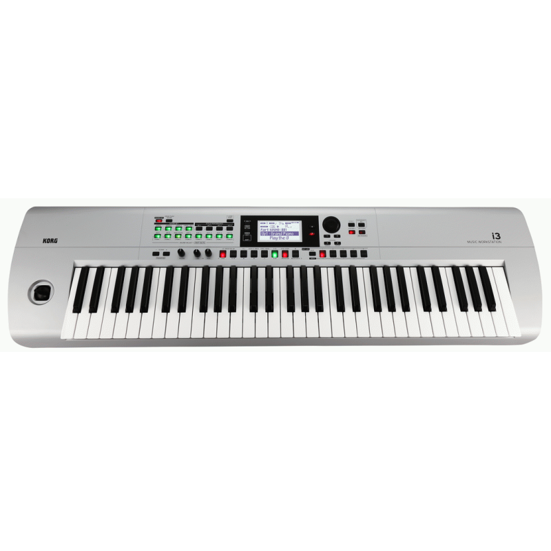 With the i3 Music Workstation, your musical themes and phrases catch fire and quickly explode into complete ready to play produc tions.Grouping sounds, beats, and parts together by Sound Set and Style Performance Set streamlines the creative process, providing a shortcut to choosing the right sounds and pulling together the right beats and grooves. On board effects and EQ tailor the sound for any per formance. The sequencer records, saves, and plays both MIDI and audio files you can even play along.Self contained, simple to use, and fun to play, the i3 is the ideal synth for the budding composer, the energetic performer, or the inspired up and coming producer. Using battery power, the KORG i3 Music Workstation can run wherever you run; convenient auto power off function preserves battery life.Inspiring,Intuitive and Instant. Korg i3 Features: •61 full size velocity sensitive keys •Nearly 800 instrument sounds •64 voices of polyphony •270 styles for dynamic accompaniment •On board 16 track sequencer •Play and export .wav or MP3 files Specifications: Keyboard: 61 keys | Sound generator: Stereo PCM sound generator, Maximum polyphony: 64 voices | Sounds: 790 sounds, 59 drum kits (including a GM compatible sound set). Sound sets: 200 | Style performance: 270 styles ×4 set | Styles: 270 | Connectors: FOOT CONTROLLER jack: 6.3 mm phone jack (half damper not supported), AUDIO IN jack: 3.5 mm stereo mini phone jack, OUTPUT L/MONO, R jacks: 6.3 mm TS phone jack (unbalanced), Headphones jack: 3.5 mm stereo mini phone jack, USB TO DEVICE port: USB Type A port (for connecting a USB flash drive), USB Type B port, MIDI OUT connector, USB MIDI, Display: Customizable LCD with backlighting | Power adapter: AC adapter (DC 12V), Batteries: AA batteries ×6 (sold separately), Battery life: Approx. 8 hr. (when using alkaline batteries) | Power consumption: 6W | Dimensions (W ×D ×H): 1,037 mm ×296 mm ×80 mm | Weight: 4 kg (excluding batteries) | Included items: Quick Start Guide, Precautions, AC adapter