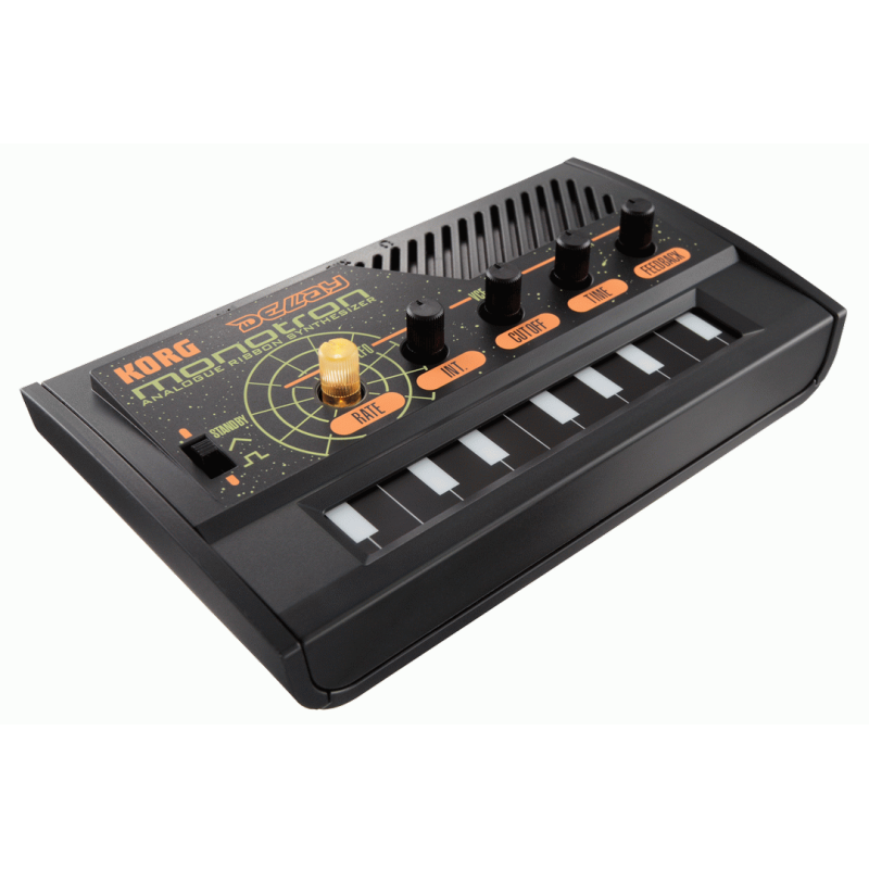 The monotron DELAY features a Space Delay that can produce intense, analog-like echo effects. Go Anywhere Analog: That was the theme behind the remarkable battery-powered and palm-sized analog synthesizer that Korg dubbed the monotron. Now the powerful a