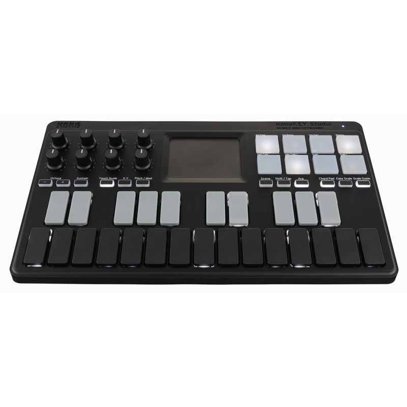 An all-in-one that delivers inspiration. A mobile MIDI keyboard that connects via USB or wirelessly. The nanoKEY Studio provides a keyboard, knobs, trigger pads, and touch pad that lets you instantly convert your inspiration into sound. It is battery operated and can connect wirelessly to iPhone/iPad or Mac/Windows. It’s a compact, mobile MIDI keyboard that is easy to travel with, allowing ease of use anytime, anywhere. The nano Studio series comes with an extravagant bundle of powerful mobile and desktop music software that includes iPad / iPhone apps, a special edition of KORG Gadget, and the KORG Collection M1 Le which includes plug-in versions of classic KORG instruments. If you have the nanoKEY Studio, there is no need to buy any additional software.
