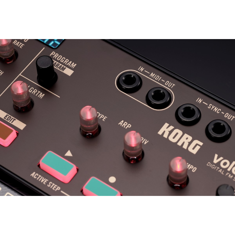 With 6 voices (instead of the 3 of its predecessor) the new volca fm brings a new world of harmonic possibilities to your production. Now it is possible to play, sequence or arpeggiate complex chords with up to 6 voices in order to bring a unique flavor to your music production. No more running out of voices when sequencing melody, harmony and bass all in one device! Moreover, the new volca fm is now velocity sensitive via MIDI, which coupled with its 6 voice polyphony, provides a much more expressive and nuanced playing experience than ever before.