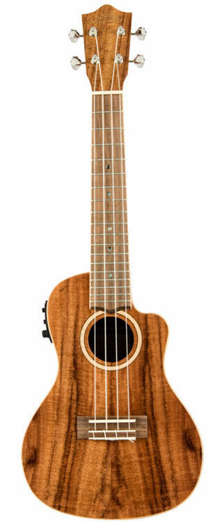The ALL SOLID Acacia ukulele by Lanikai delivers dynamic new features such as a wider nut for player comfort, select figured wood, Grover open back tuners, wood marquetry, NuBone XB nut and saddle, D'Addario strings, glossy finish and a foam case. Deluxe