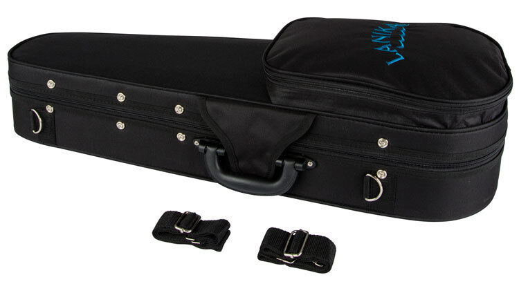 Black deluxe light weight but durable nylon/foam case. Available in soprano, concert, tenor and baritone sizes Lightweight but very protective and durable foam construction Durable black nylon exterior Detachable and adjustable black webbed nylon shoulder straps Metal ring strap attachment points Backpack or shoulder style strap options Heavy duty hard swivel style handle Large zippered exterior accessory pocket Heavy duty zipper with metal zipper pulls Velcro zipper cover tab Large interior storage compartment under neck Velcro interior neck retaining strap X stitched reinforced stress points External steel screw secure points