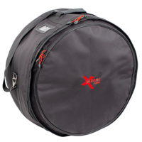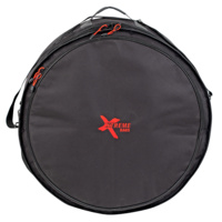 Heavy duty 1800D black nylon waterproof yarn. Reinforced interior lining with 5mm PE + 15mm foam padding. Easy carry handle and strap. Heavy duty zip. Features a large outer accessory/cymbal/drum head pocket for storage. PVC window for name tag/card. Embroidered Xtreme logo.