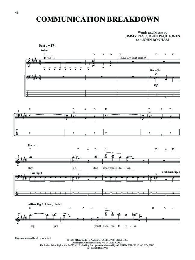 Led Zeppelin's self-tltled first album, now known as Led Zeppelin I, contains the hit songs "Communication Breakdown" and "Dazed and Confused" and spawned the band's seemingly overnight success. Drawing from more than 30 years of documentation, interviews, and recorded footage, this bass TAB book delivers unprecedented accuracy. Titles: Good Times Bad Times • Babe I'm Gonna Leave You • You Shook Me • Dazed and Confused • Your Time Is Gonna Come • Communication Breakdown • I Can't Quit You Baby • How Many More Times. Led Zeppelin - I Composer: Led Zeppelin Publisher: Alfred Music Instrument: Guitar Format: Bass TAB Pages: 64 Series: Alfred's Platinum Album Editions