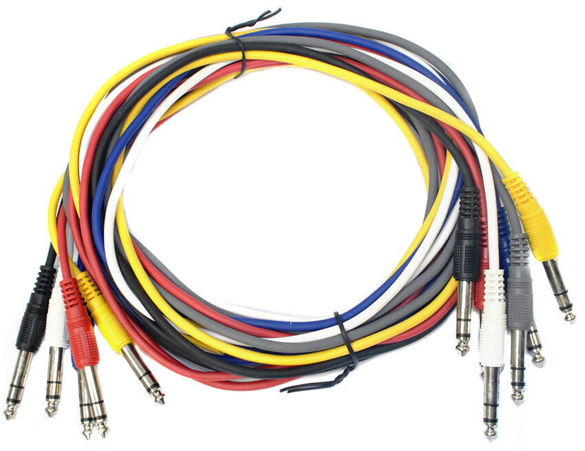 Leem Stereo Patch Cables are designed to interconnect pro audio gear with balanced phone jacks. They are ideal for use with balanced phone patch bays. You can trust in the quality of LEEM! These cables This cable features: 1/4" Stereo Jack Plug  - 1/4" Stereo Jack Plug Length: 2m / 6ft Various Colours Sold as  a Pack of 6