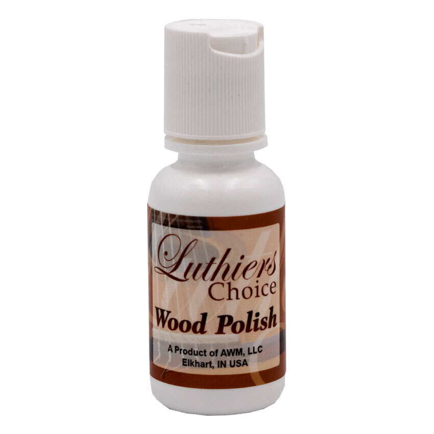 Luthiers Choice Wood Polish & Conditioner Bottle - 30ml (1 oz.) of high quality wood polish and conditioner. Cleans residue and oils from the instrument while providing a shine. Made in USA.