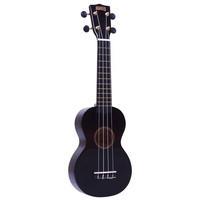 MAHALO MR1BK SOPRANO UKULELE BLACK. Mahalo soprano sized ukulele, perfect for all ages and playing abilities! Featuring a Sengon body, neck and fingerboard, Mahogany bridge & gold geared machine heads.