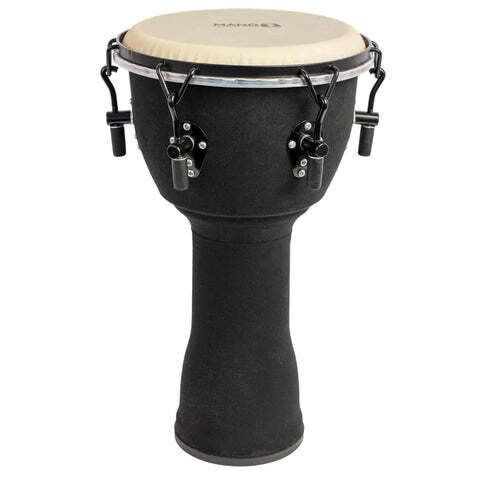 Mano MPC04BK Tuneable 10" Djembe - Black Cloth ABS shell. 6 tunable hook lugs. Lightweight cloth wrapped shell. Rubber base strip for extra protection. Fantastic 10" tunable djembe with an excellent range. Excellent for young & older players alike. Should you want a Darbuka sound, but can’t afford that type of drum, this would make a very stellar substitute! ABS shell, 19 3⁄4" high with 6 tunable hook lugs.  Light-weight cloth wrapped ABS shell.  Rubber base strip for extra protection.  Includes bag with backpack straps and tuning wrench.