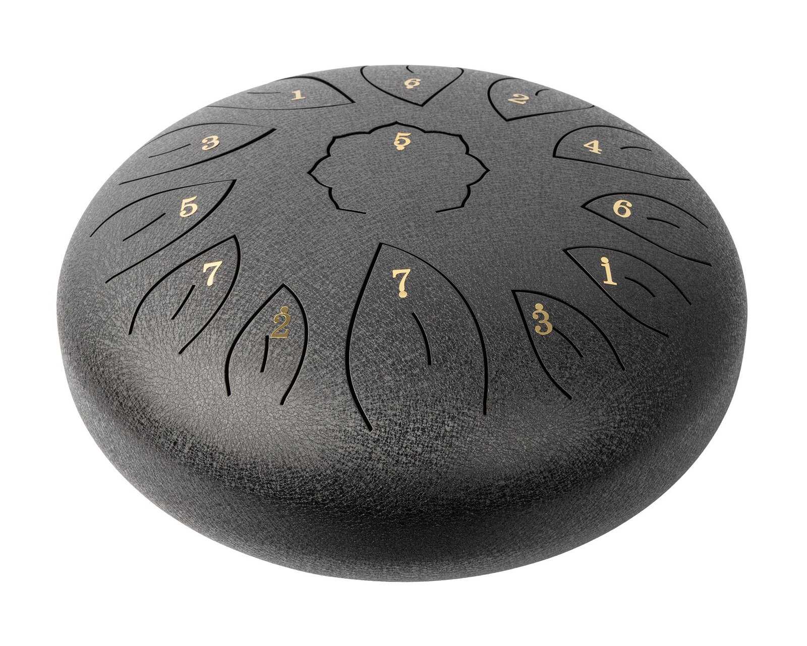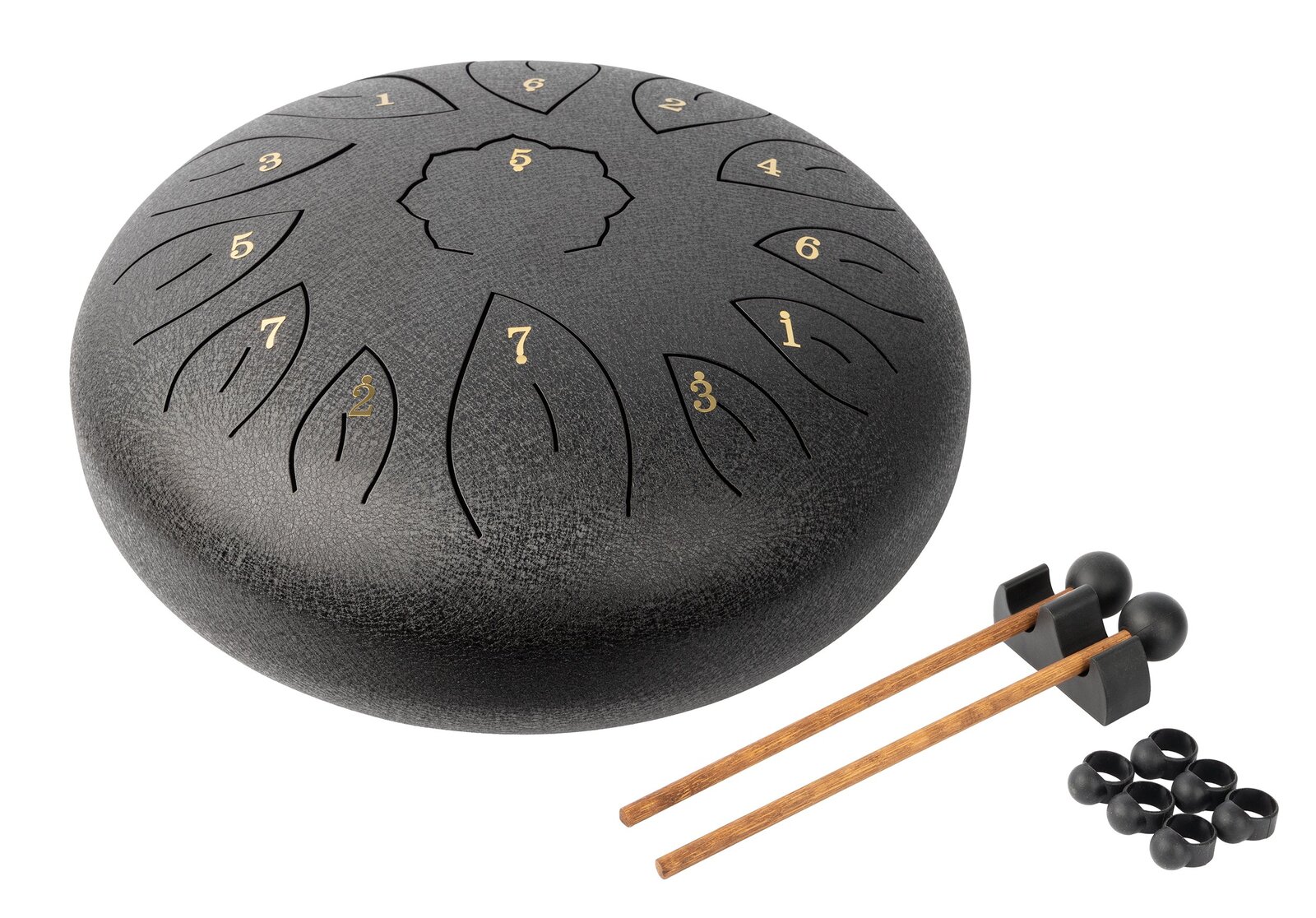 C Diatonic. Hand crafted from high grade steel-titanium alloy, coated with a durable paint that protects against tarnishing, scuffs and scratches. These drums produce a clean, bell like, ethereal tone. 13 hand tuned notes. Supplied with mallets, mallet holder, six rubber finger pads, instructional song booklet and heavy duty carry bag with shoulder strap.