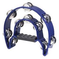 The Mano Percussion Double Half-Moon Tambourine 20 Jingle - Blue is a 9" x 6" double half moon tambourine. ABS rim. 20 pairs of nickel silver jingles in double row.