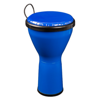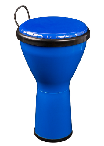 Mano Percussion MPC02B 8” Pre-Tuned Djembe - Blue Mano Percussion 8" Pre-tuned djembe. Great for kids, as there is no metal work on the drum. ABS shell. 15" high. Matching synthetic drum head. Rubber base strip for extra protection. Black rope handle. Includes bag with backpack straps.