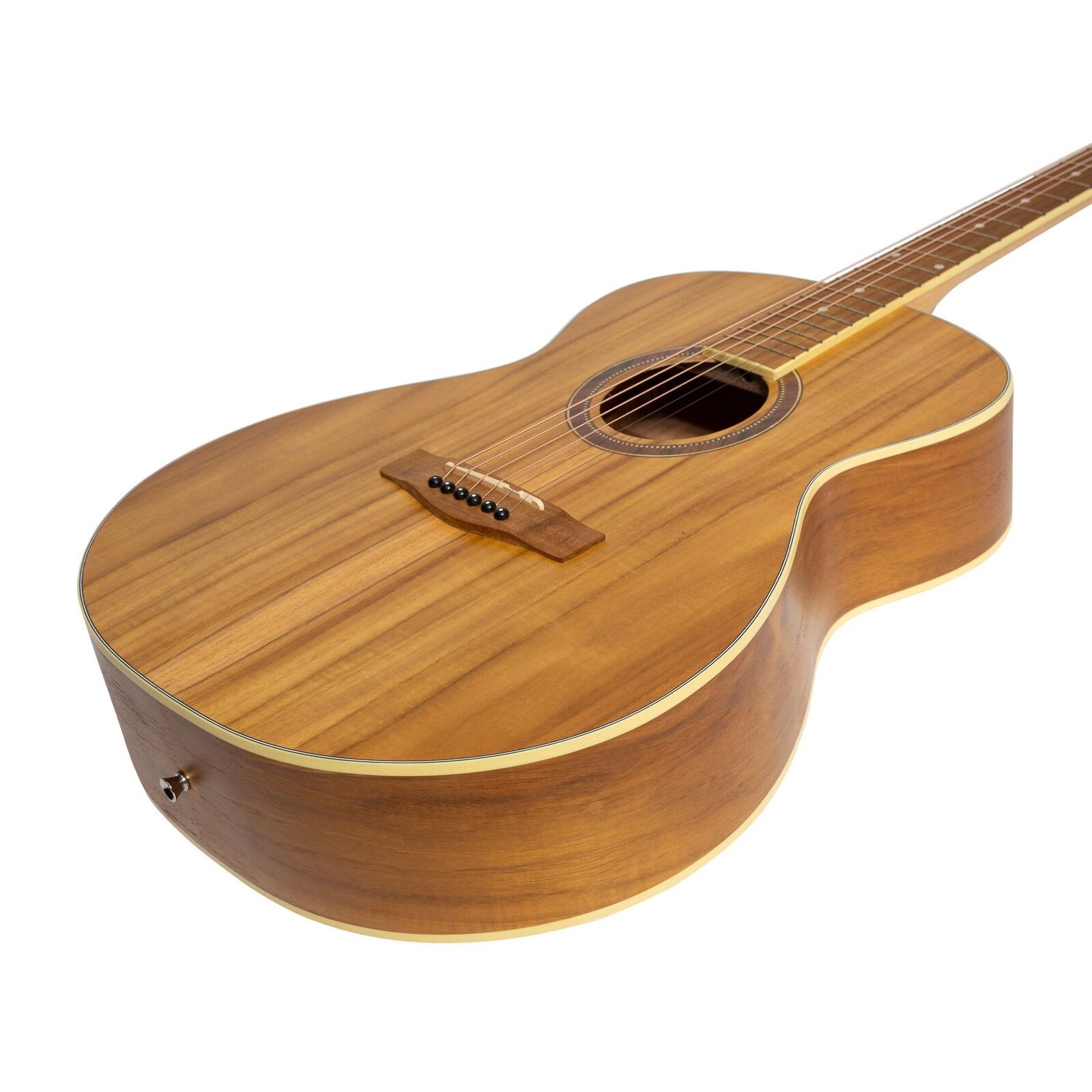 The Martinez '41 Series' is an ideal choice for students and intermediate players wanting the tone, feel and appearance of an iconic acoustic guitar in a value-priced package. The MF-41 Folk Size Guitar is a versatile and compact acoustic, resonating a significant tonal range without sacrificing projection and volume. With built-in Martinez BC-350 Chromatic Tuner. BRAND: MARTINEZ MODEL: MF-41T-JTK INSTRUMENT: ACOUSTIC GUITAR SHAPE: SMALL-BODY / FOLK COLOUR: NATURAL DEXTERITY: RIGHT STRINGS: 6 STRING TYPE: LONG LIFE PHOSPHOR BRONZE WEIGHT: 1.8 KG TOP: LAMINATE JATI-TEAKWOOD BACK / SIDES: LAMINATE JATI-TEAKWOOD NECK: MAHOGANY FINGERBOARD: JATI-TEAKWOOD BRIDGE: JATI-TEAKWOOD BRIDGE SADDLE: 75mm SCALE LENGTH: 25.5" NUT WIDTH: 43mm MACHINE HEADS: MARTINEZ PICKUP SYSTEM: NONE BUILT IN TUNER: BC-350 FRETS: 21 WARRANTY: 1 YEAR INCLUDES CASE: NONE LENGTH: 1040mm DEPTH: 115mm UPPER BOUT: 295mm WAIST: 240mm LOWER BOUT: 390mm