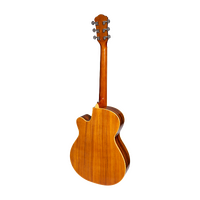 With elegant archtop styling coupled with traditional flat top design, the Martinez MJH-3CPG-KOA Jazz Hybrid Guitar is not your everyday acoustic, providing the best of both worlds with its head turning good looks and full bodied acoustic tone. The Jazz Hybrid is an ideal choice for the aficionado and enthusiast alike, offering easy playability and warm tone, within a vintage-styled package. BRAND: MARTINEZ MODEL: MJH-3CPG-KOA INSTRUMENT: ACOUSTIC-ELECTRIC GUITAR SHAPE: SMALL BODY GUITAR COLOUR: NATURAL GLOSS DEXTERITY: RIGHT STRINGS: 6 STRING TYPE: LONG LIFE PHOSPHOR BRONZE TOP: LAMINATE KOA BACK / SIDES: LAMINATE KOA NECK: MAHOGANY FINGERBOARD: ROSEWOOD BRIDGE: ROSEWOOD BRIDGE SADDLE: 75mm SCALE LENGTH: 25.5" NUT WIDTH: 42mm MACHINE HEADS: MARTINEZ PICKUP SYSTEM: PIEZO UNDERSADDLE PICKUP BUILT-IN TUNER: NO FRETS: 22 WARRANTY: 1 YEAR INCLUDES CASE: NO LENGTH: 1045mm DEPTH: 100mm UPPER BOUT: 280mm WAIST: 240mm LOWER BOUT: 390mm
