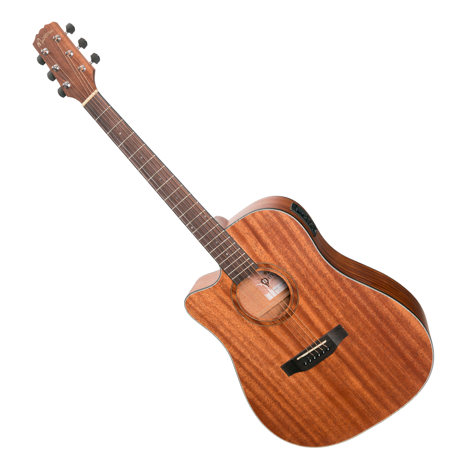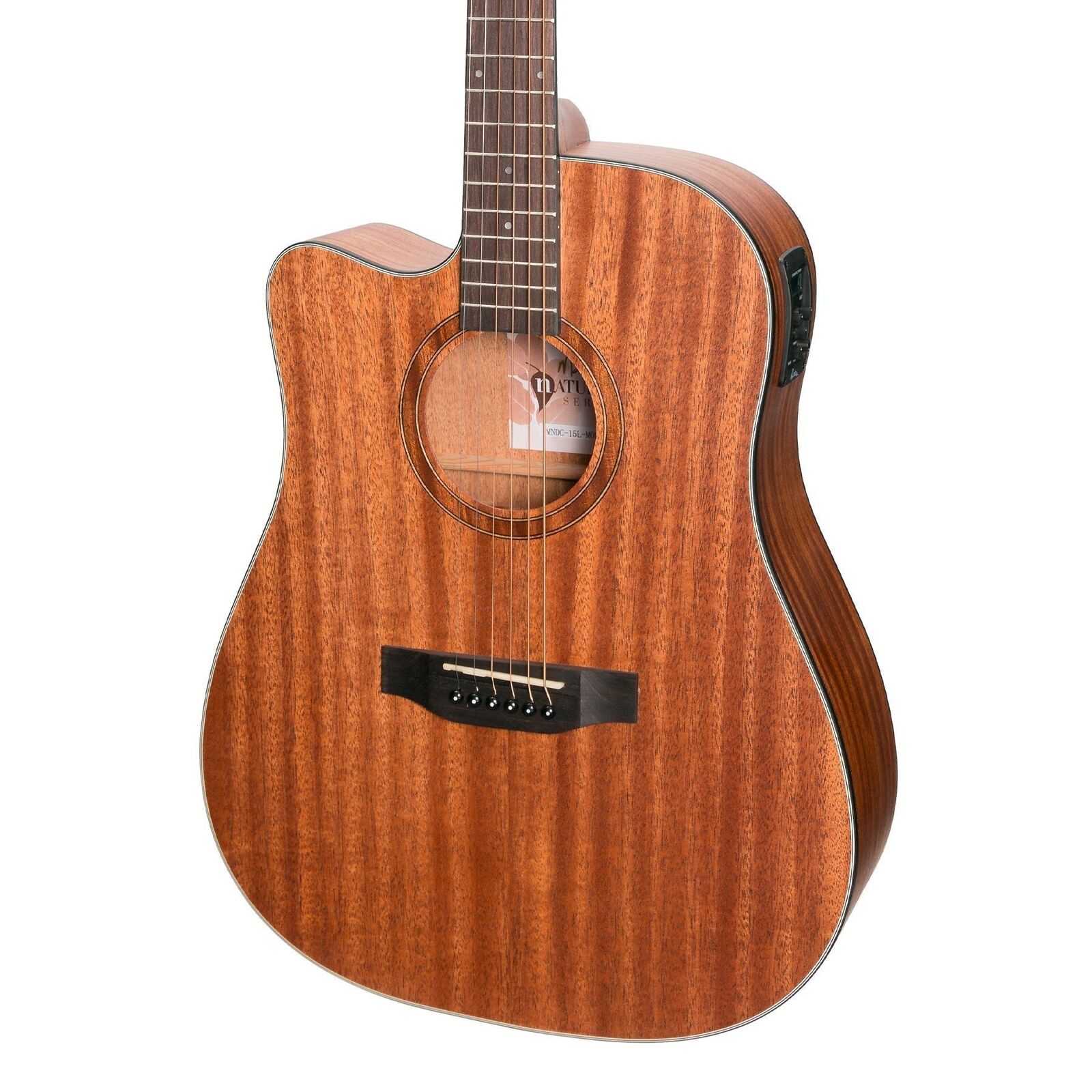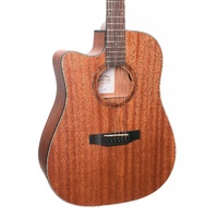Martinez's incredibly popular 'Natural Series' provides unsurpassed value for money, tone and playability; making it the perfect choice for guitarists from all walks of life. Thanks to Martinez's open pore "breathable" finish, the MNDC-15L resonates and projects significantly more than instruments with a traditional gloss or satin finish. Constructed from traditional tone-woods, using modern techniques and materials, the MNDC-15L dreadnought cutaway also features the Martinez K4T preamp with 3-band EQ, volume and presence control and chromatic tuner - an ideal guitar for strumming on stage or at home. Designed in Melbourne, Australia. BRAND: MARTINEZ MODEL: MNDC-15L-MOP INSTRUMENT: ACOUSTIC GUITAR SHAPE: DREADNOUGHT CUTAWAY COLOUR: OPEN PORE NATURAL DEXTERITY: LEFT STRINGS: 6 STRING TYPE: LONG LIFE PHOSPHOR BRONZE TOP: LAMINATE MAHOGANY BACK / SIDES: MAHOGANY NECK: MAHOGANY FINGERBOARD: TECH-WOOD BRIDGE: TECH-WOOD BRIDGE SADDLE: 72mm SCALE LENGTH: 25.5" NUT WIDTH: 42mm MACHINE HEADS: MARTINEZ PICKUP SYSTEM: MARTINEZ K4T BUILT IN TUNER: YES FRETS: 20 WARRANTY: 1 YEAR INCLUDES CASE: NONE LENGTH: 1050mm DEPTH: 114mm WAIST: 280mm UPPER BOUT: 300mm LOWER BOUT: 395mm WEIGHT: 1.9kg